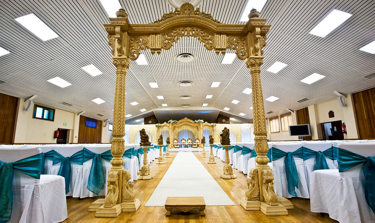 Contemporary art work meets traditional designs in our stunning exclusive Akshara Mandap. The intricate carved roof and delicate swan carved base is an exemplary design to suit any venue.