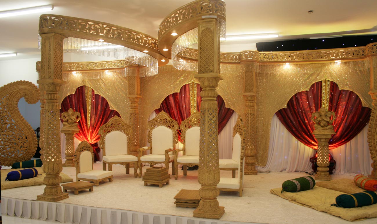 A Mandap with a difference, this fibre glass wooden finish design features carved butterfly design on Roma with the Swaroski crystal finish, makes this Mandap both unique and stunning.